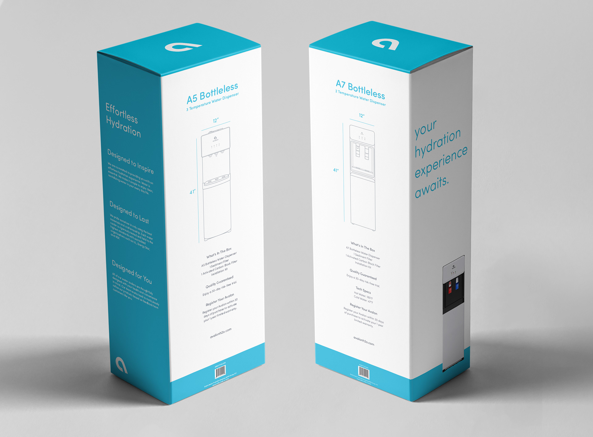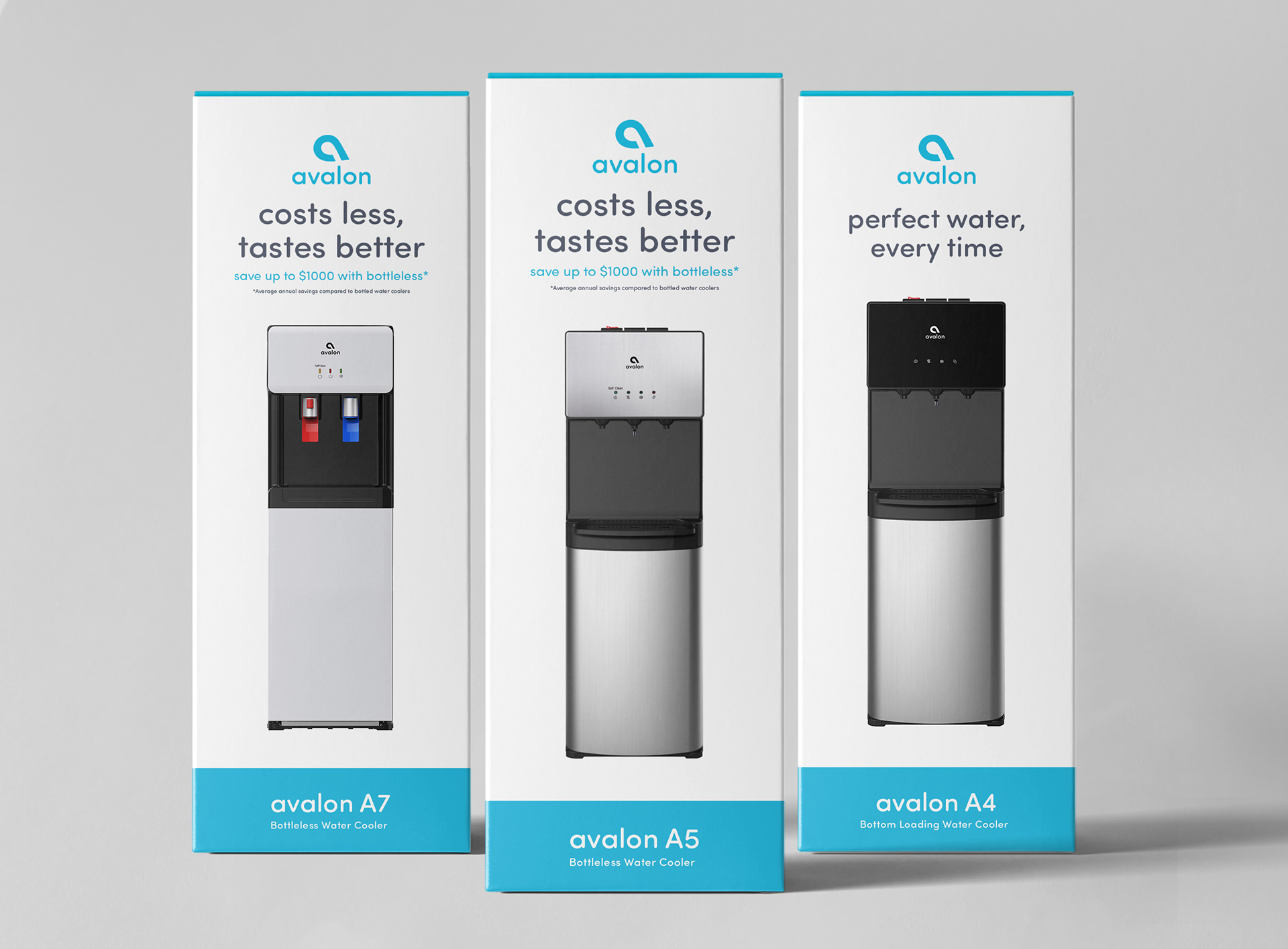 Redesign of packaging for Avalon H2O's entire product line. Each design is meant to reflect the sleek identity of the brand, with some pops of blue to help the products stand out on shelves.